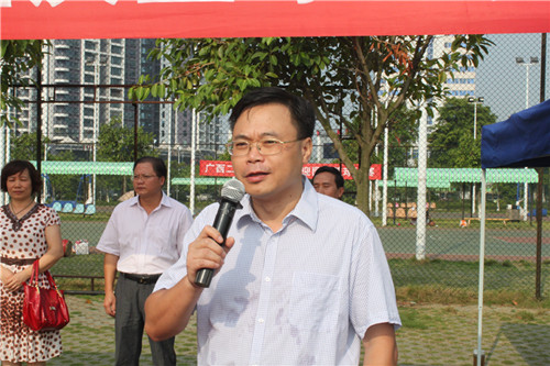 公司黃鼎龍董事長(zhǎng)宣布籃球賽開(kāi)幕